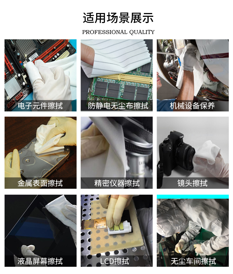 【适用范围】适用于擦拭PCB线路板、半导体生产线、精密仪器、LED显示屏等